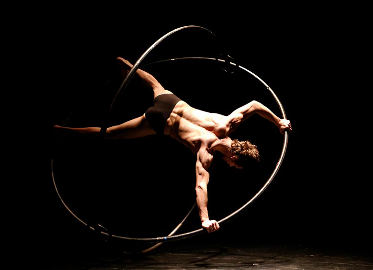 Pour cette création, le circassien Vasil Tasevski souhaite revenir à son agrès fétiche, la topka, double roue-cyr qu’il a conçue au cours de ses années de formation. À ses côtés, un musicien – créateur sonore travaillera à dialoguer avec le mouvement particulier induit par la topka. Cette pièce est née du désir de revenir au geste circassien initial afin de mettre en avant les spécificités de cet agrès, son mouvement original qui permet à la fois des allers-retours, à la manière d’un bercement et un travail acrobatique basé sur la force centrifuge et le tournoiement. Vasil souhaite créer une forme puissante, adressée, vivante pour exprimer un rapport au temps cyclique, onirique et envoûtant.